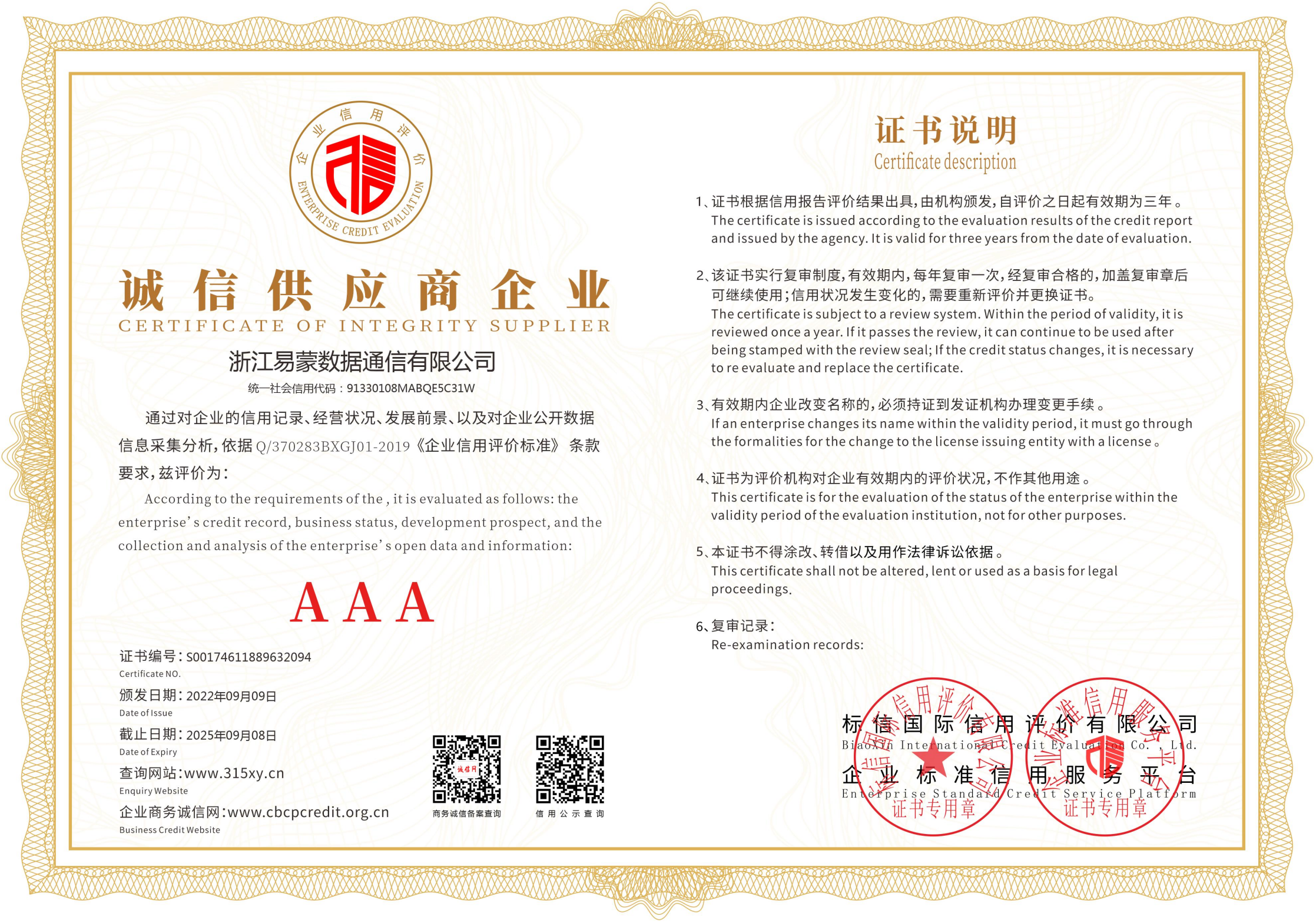 浙江易蒙数据通信有限公司 以数据通信设备为核心和整体系统解决方案的提供商。公司业务聚焦于智能数据通信设备、大数据中心系统方案解决和智慧制造为方向,构建一个安全、绿色、前沿、高效的设备系统生态,为各个行业提供产品与服务。公司拥有较为完善的营销网络和服务体系,通过建立覆盖全国各省份的业务联络网点,以更加快速和有效的资源调配及协作机制为客户提供更为贴合需求的可持续服务,并在新加坡、台湾也建立了业务联络点,积极的为建立海外市场的销售及服务。