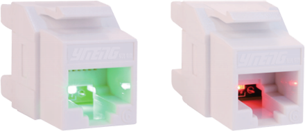 标准的RJ45结构,尾套外观设计简洁美观; LED智能导航软跳线,内置柔性基材电路板,配合内置LED双色指示灯及其LED电路; 可以根据LED颜色判断不同节点连接状况;LED绿(可定制颜色)灯亮: 面板上模块与配线架上模块连接良好,但未配线架模块与交换机连接; LED红(可定制颜色)灯亮: 面板上模块与配线架上模块连接良好且已与交换机连接成功。