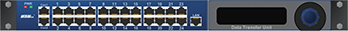 DTU智能管理单元是易蒙智能布线系统的唯一有源设备,负责采集下连的智能配线架信息,并以数据打包形式将所采集到的数据上传到服务器端,由管理软件处理。 24个RJ45端口用以连接配线架,其中后8个RJ45端口可以扩展连接至下一级的DTU智能管理单元 2个CON端口可以连接上一级的DTU智能管理单元。 OLE显示屏用以查看DTU智能管理单元的信息、配线架的端口工作状态,以及引导任务操作。 旋转按钮用于配线架之间和端口之间的切换,通过旋转按钮完成查找跳线以及查看配线架端口连状态操作。 2个LED灯,分别显示DTU智能管理单元和配线架的供电情况。
